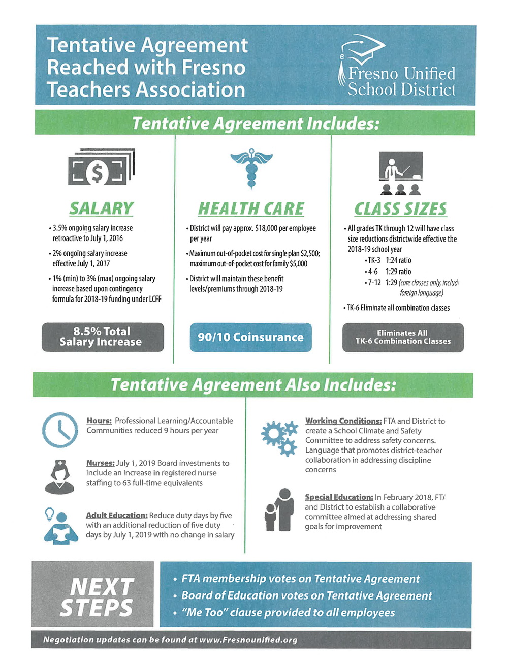 Fresno Unified’s teachers, along with the district’s other bargaining units, get pay raises and a better deal on healthcare. The teachers also will see class-size reductions and the creation of a union-district committee to address school safety concerns. Special education, which long has needed additional investment, will be the subject of another joint committee.