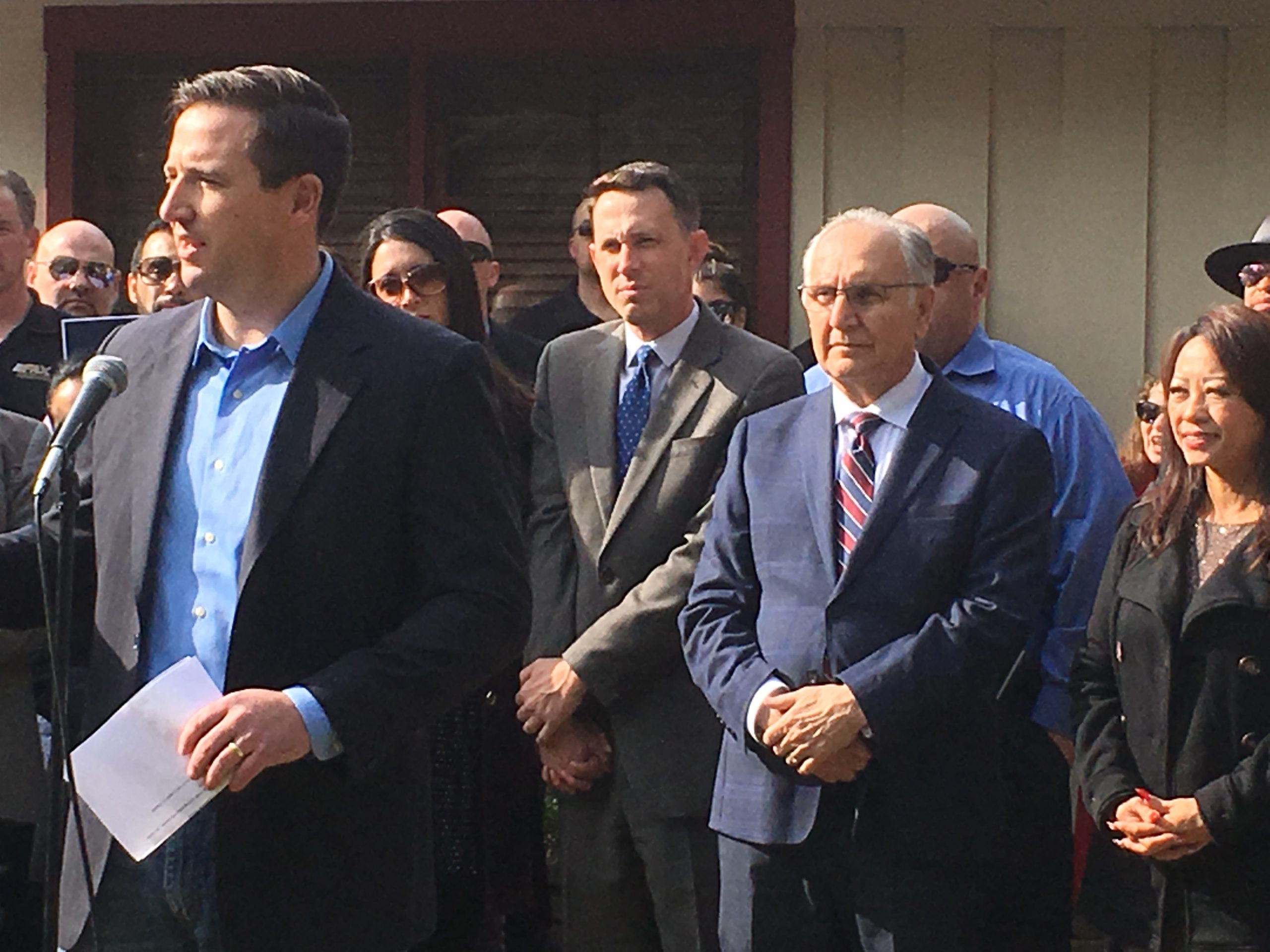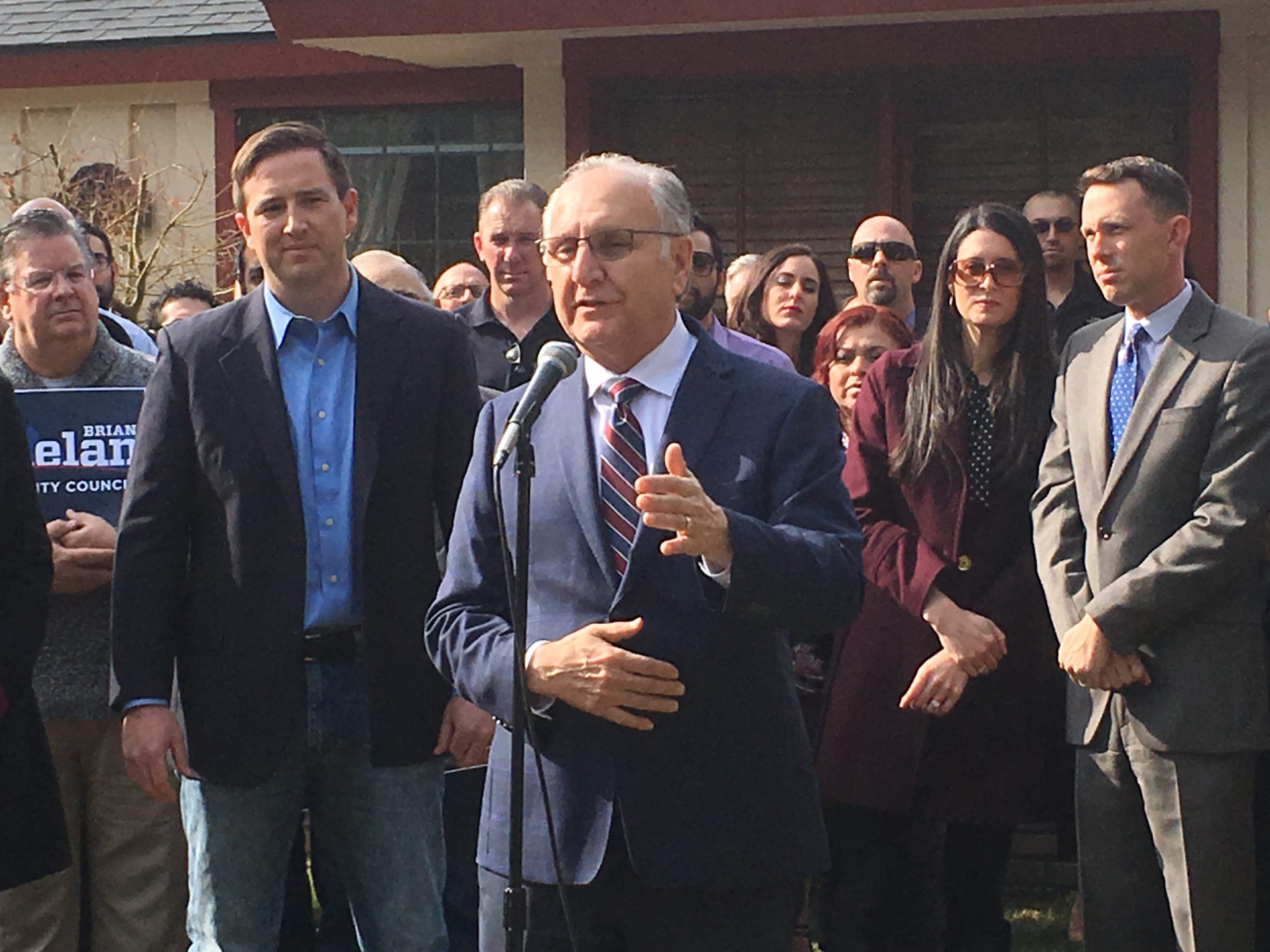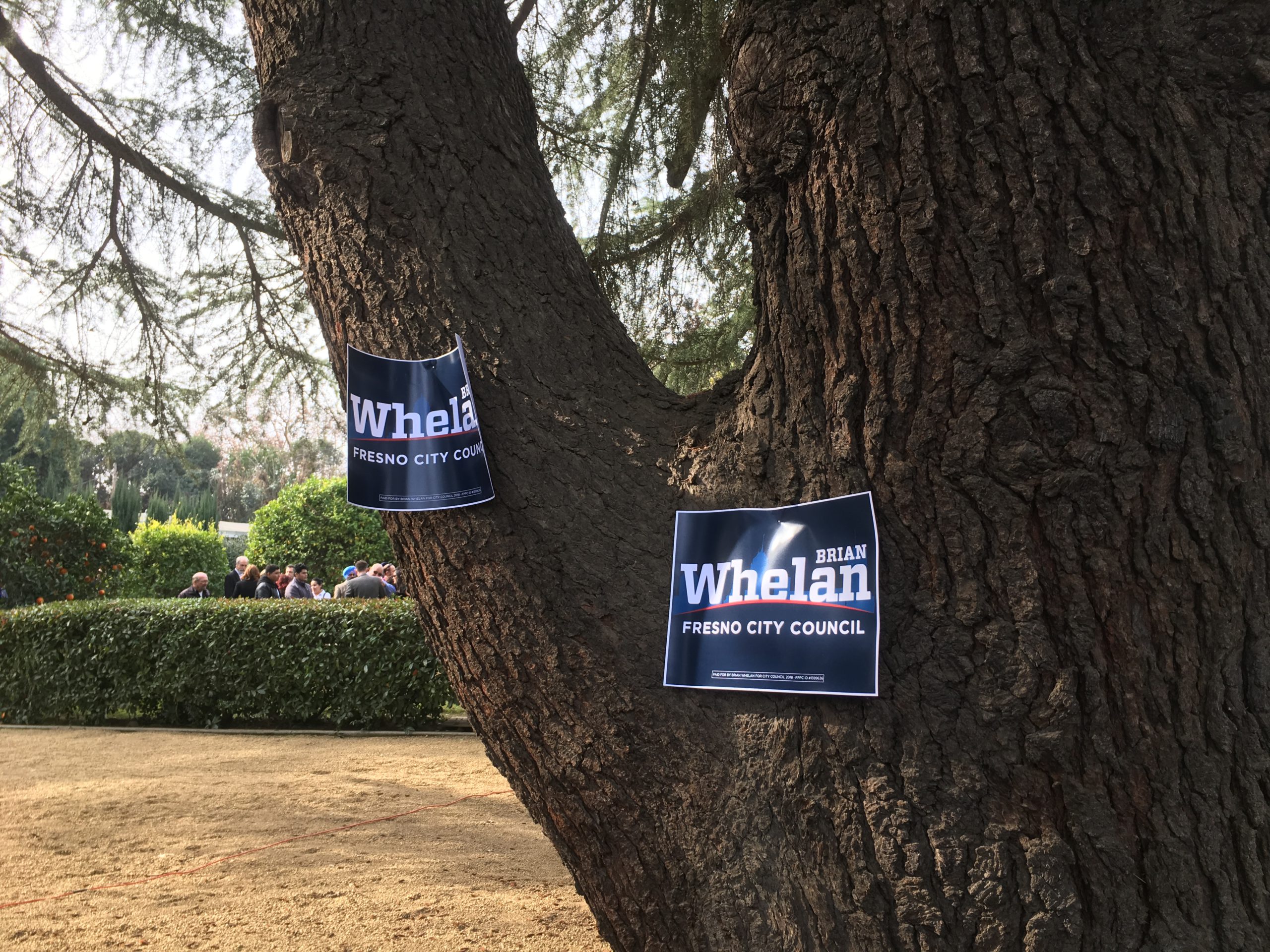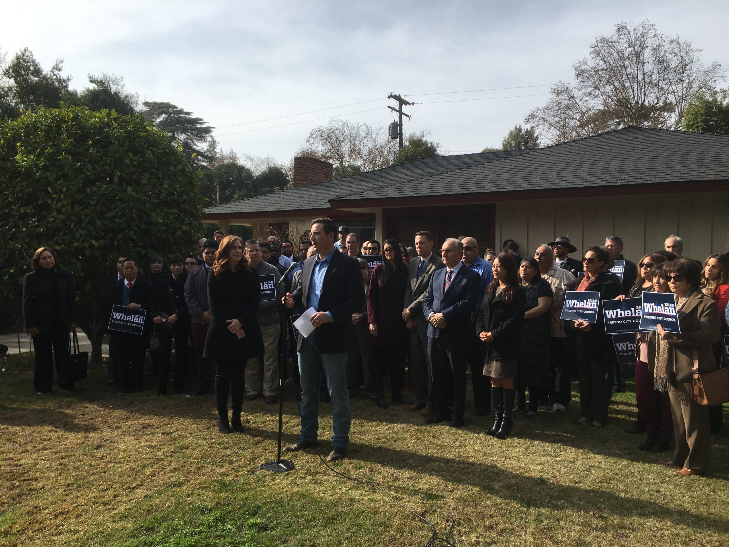 Flanked by Fresno’s mayor and the man he hopes to replace, attorney Brian Whelan announced his run for city council Thursday. Making his remarks on his front lawn, just a block south of Christmas Tree Lane, Whelan said he wants to create more Neighborhood Watch programs to combat crime.
