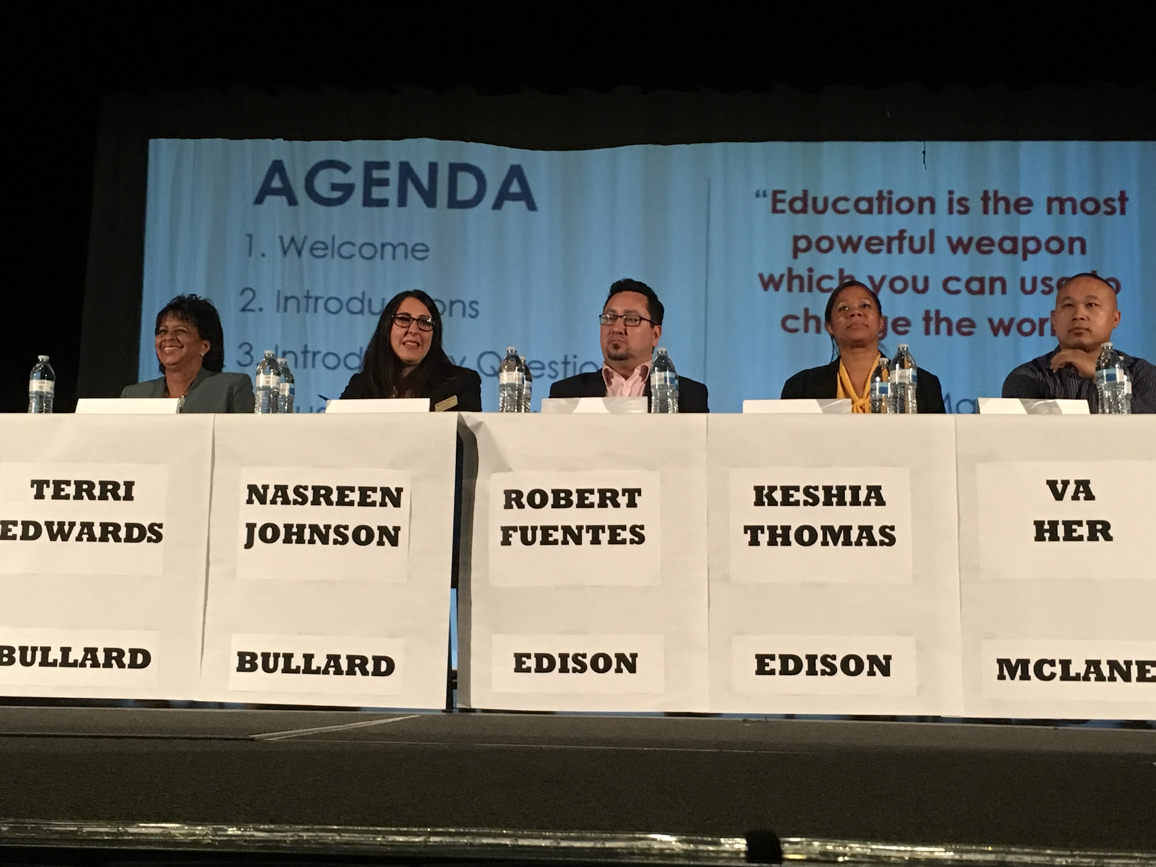 In a way-too-early public forum for Fresno Unified school board candidates, five hopefuls took the stage at Bullard High School on Thursday night.Hosted by the Fresno Teachers Association, the candidates fielded questions from moderator Manuel Bonilla (the incoming FTA president) as well as members of the audience.