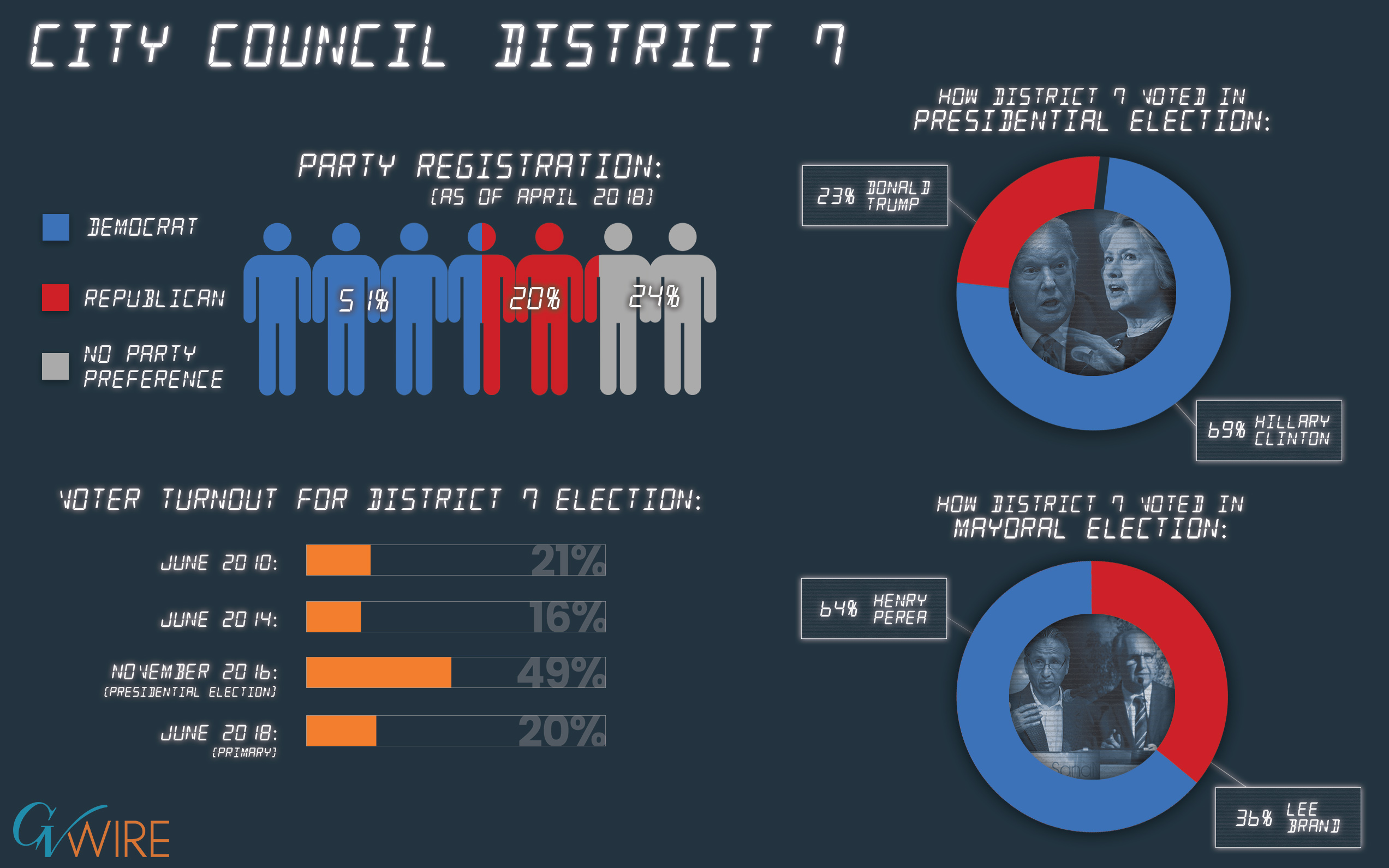 The district also has the lowest voter registration (as of April 2018) of all seven council districts.