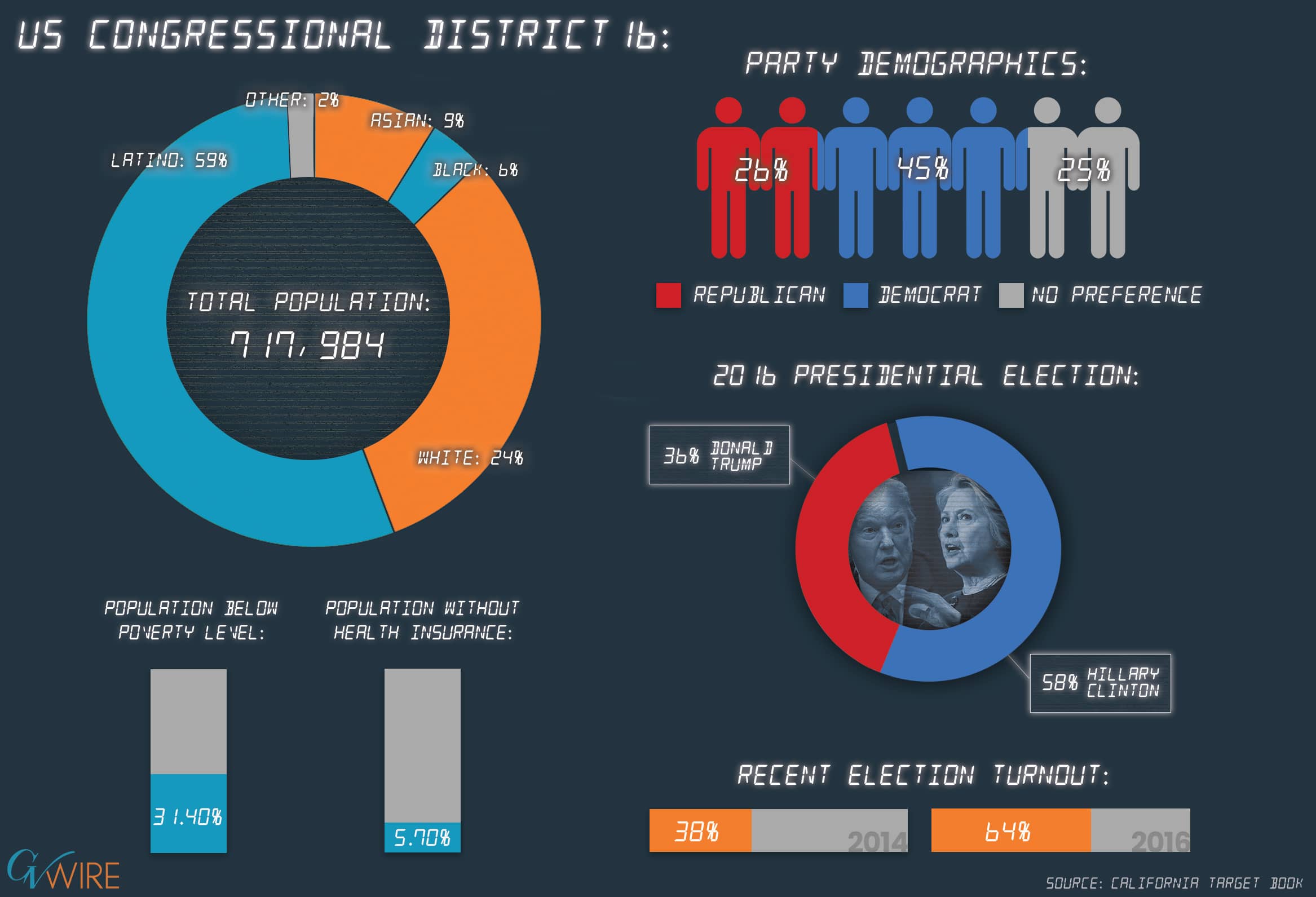 The 16th district, which looks like the letter ‘A’ on a map spanning from Merced to Fresno, has a 19 percentage point Democratic registration advantage over Republicans.