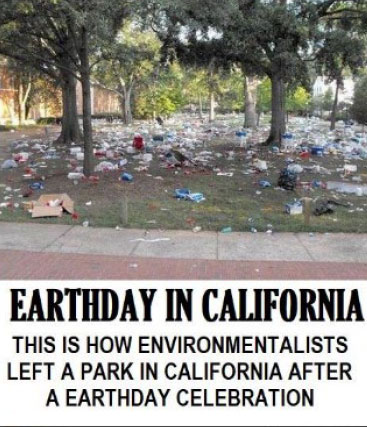 CLAIM: THIS IS HOW ENVIRONMENTALISTS LEFT A PARK IN CALIFORNIA AFTER AN EARTH DAY CELEBRATION — caption with photo of a park strewn with garbage.