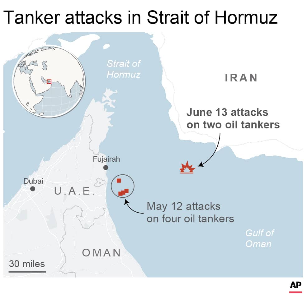 Trump withdrew America last year from the 2015 nuclear deal that Iran reached with world powers and recently imposed a series of sanctions now squeezing its beleaguered economy and cutting deeply into its oil exports. While Iran maintains it has nothing to do with the recent attacks, its leaders repeatedly have threatened to close the vital Strait of Hormuz, through which 20 percent of the world’s oil flows.