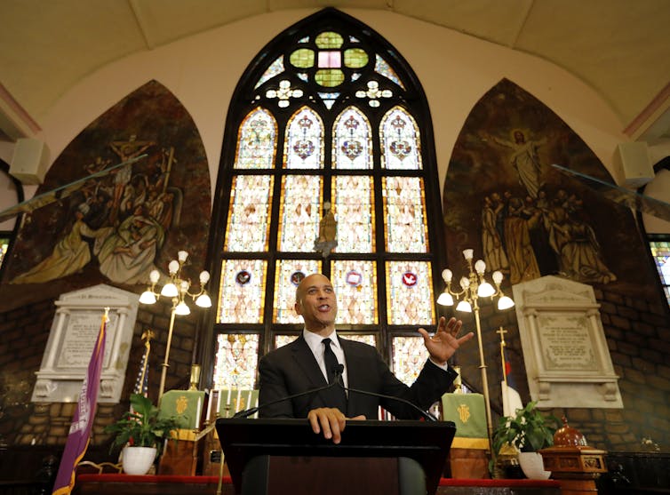 In pushing for criminal justice reform, Sen. Cory Booker speaks about the Christian tradition of “grace.” He’s also been known to quote the Prophet Muhammad, Buddha and the Hindu god Shiva.