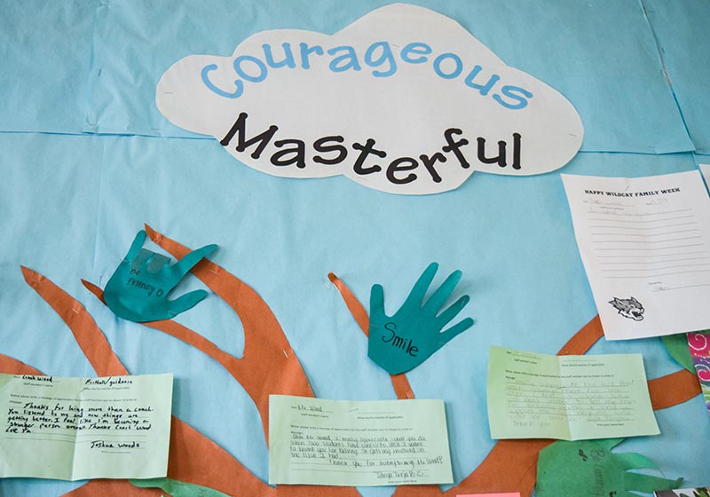 Rodriquez said she soon realized that she and Wood needed to work in the same room to cement their teamwork. Room S213 became their hub, a place where they could work with students on developing their “emotional intelligence,” using “I” phrases instead of “you,” and developing empathy toward others.