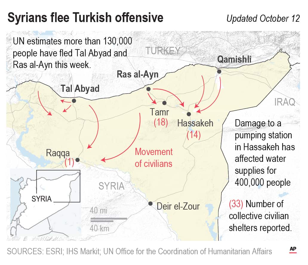 The U.S. has had about 1,000 troops in northeastern Syria allied with the Kurdish-led Syrian Democratic Forces to combat IS. The Pentagon previously had pulled about 30 of these troops from the Turkish attack zone along the border. With an escalation of violence, a widening of the Turkish incursion and the prospect of a deepening conflict, all U.S. forces along the border will now follow that move. It was unclear where they would go.