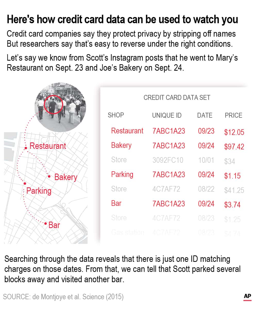 Banks insist they don’t share personal information with other companies because they replace names with anonymous ID numbers. Privacy researchers, however, have shown that such data can be “de-anonymized” under the right conditions.