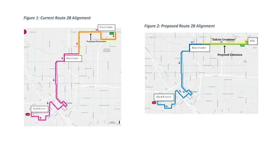 That would cause a change in Route 28, which now carries passengers from west Fresno, through the Manchester Transit Center, to Fresno State. The city plans to eliminate the Manchester to Fresno State link, replacing it with the “Dakota Crosstown.”