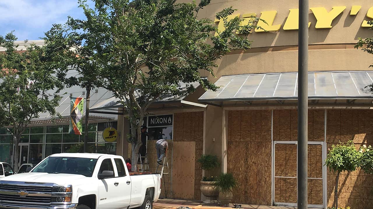 Around noon, it was mainly quiet in the north side of River Park. Tilly’s was placing wooden boards across its storefront. Pink’s and Victoria’s Secret were already covered up.