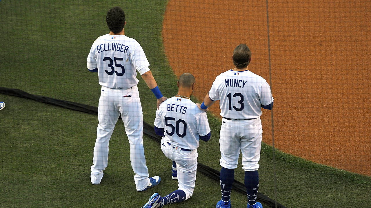 Betts spoke without his bat when he kneeled during the national anthem. Teammates Cody Bellinger and Max Muncy stood resting a hand on each of his shoulders. Giants manager Gabe Kapler, in his first game as Bruce Bochy’s successor, kneeled, too.