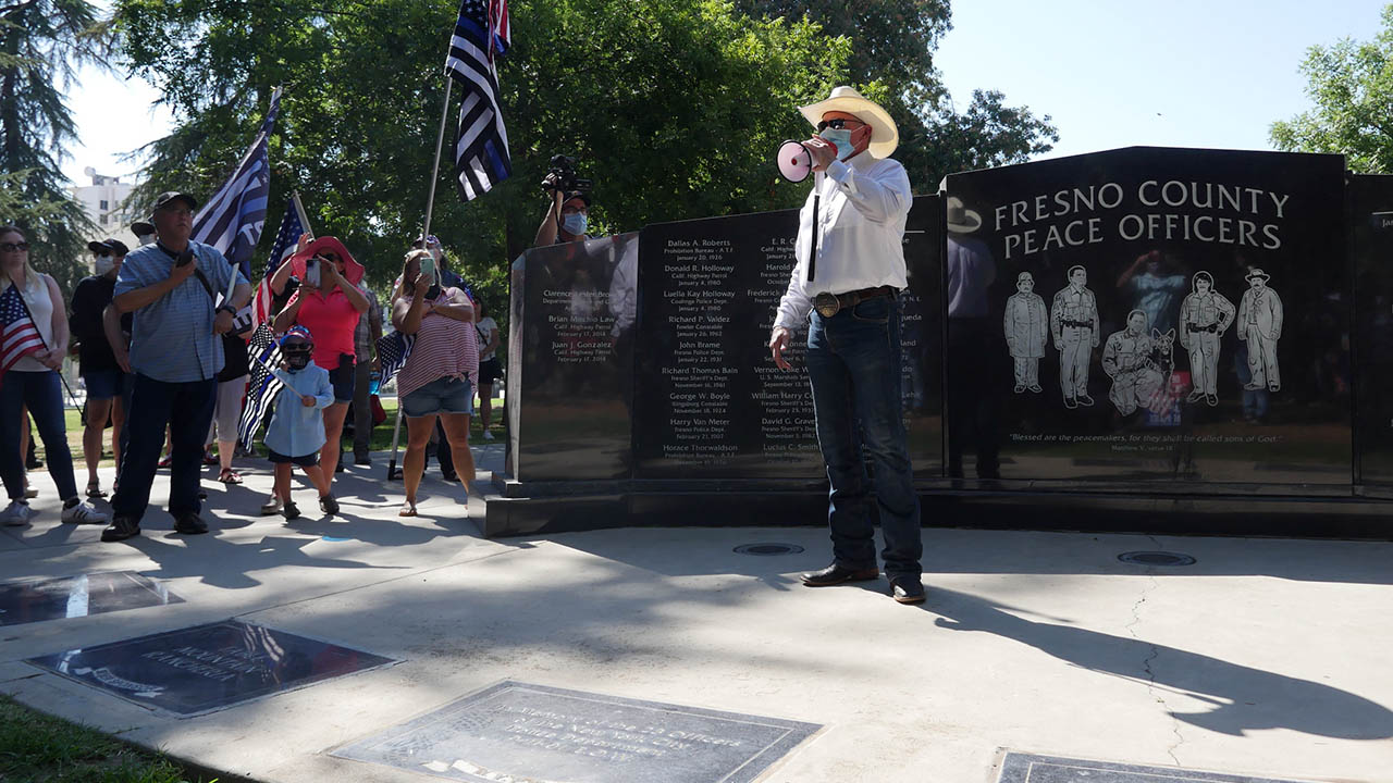 The group then headed to the peace officers’ memorial at Courthouse Park. Hardin and Todd Frazier, president of the Fresno Police Officers’ Association union, gave short speeches.