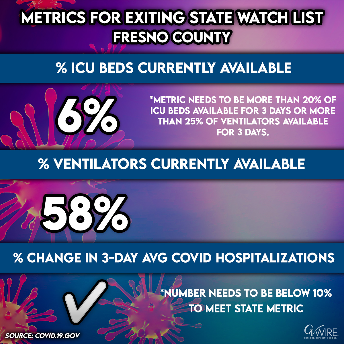 And that begs the question: What gains in coronavirus containment must Fresno County (and others) achieve to get off the watch list?