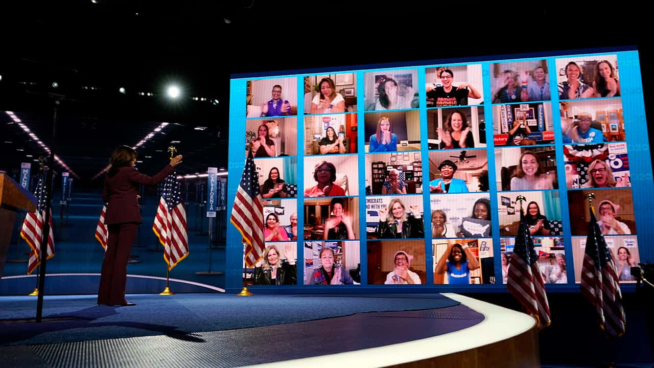The pandemic forced Biden’s team to abandon the traditional convention format in favor of an all-virtual affair that has eliminated much of the pomp and circumstance that typically defines political conventions. It was completely silent, for example, as Harris took the stage to make history at the Chase Center in downtown Wilmington. She was flanked by American flags but no family, and her audience consisted of a few dozen reporters and photographers.