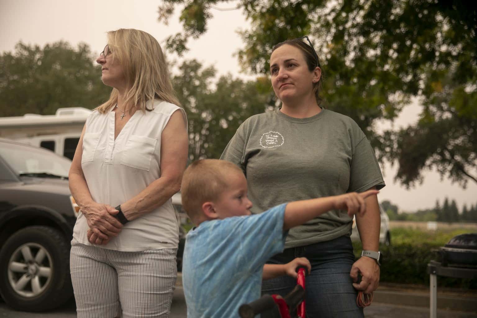 As ash drifted down from the fires burning through Solano County, a woman sweating under the smoke-reddened sun dug through her car, searching for an adapter for her husband’s oxygen machine.