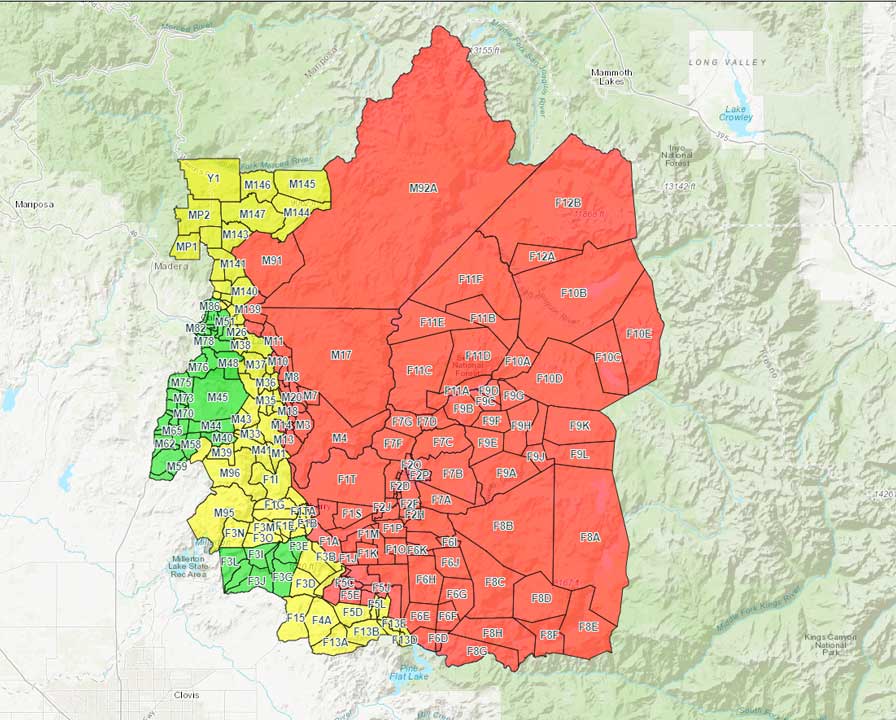 In Madera County, Cal Fire said, “particular attention will be paid to areas that could make a run toward (the) communities of Central Camp, South Fork Bluffs, and Whiskey Falls.”