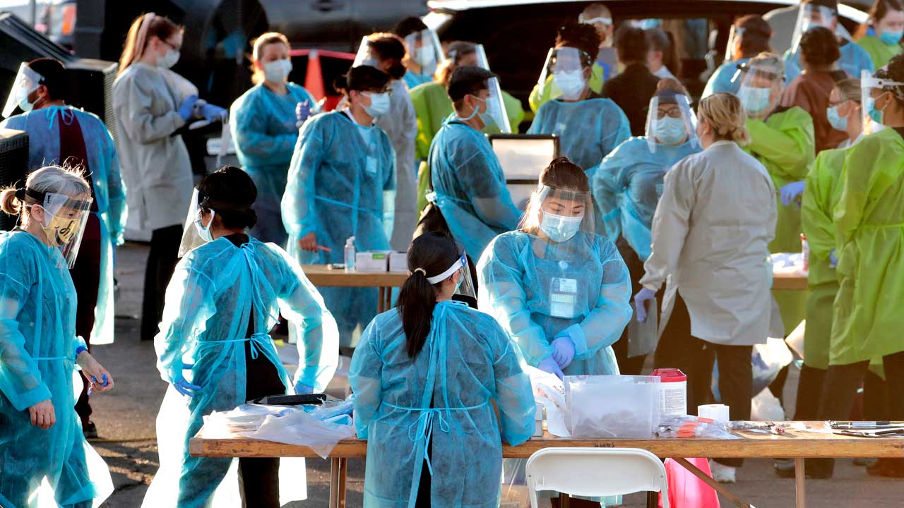 A University of California, Berkeley study estimated that at least 35% of health care and other essential workers in California who tested positive for COVID-19 were infected at work, amid shortages.