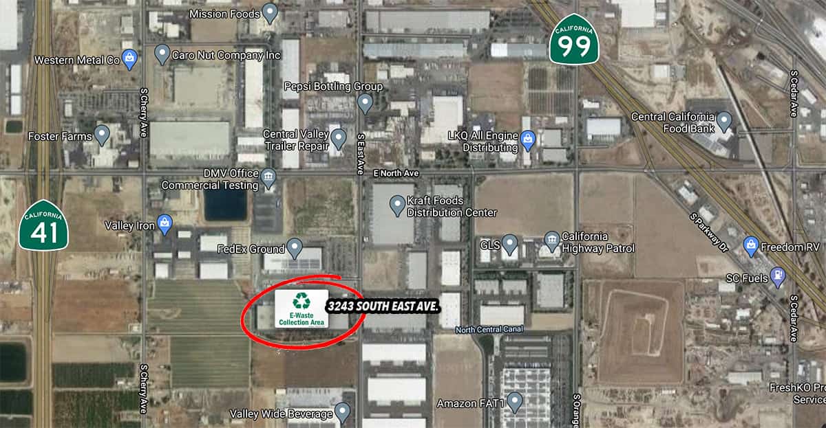 Electronic Recyclers Inc. is hosting a drive through household e-waste drop-off at their local facility from from 9 a.m. to 1 p.m. The location is south of downtown Fresno at 3243 S. East Ave. with easy access from highways 99 and 41.