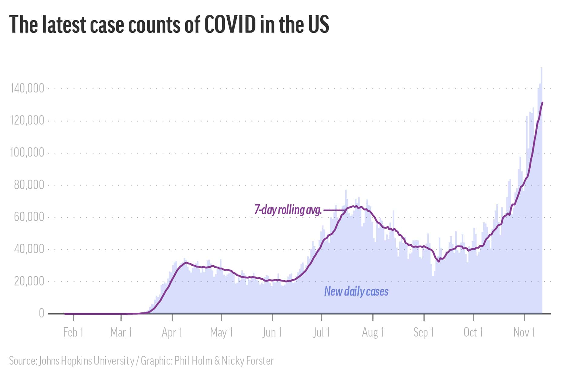 New cases per day are soaring, shattering records over and over and reaching an all-time high on Thursday of over 153,000.