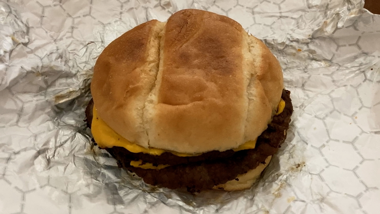 - Karl’s Grilled Cheese: Three slices of American cheese griddled crisp on an inverted bun.