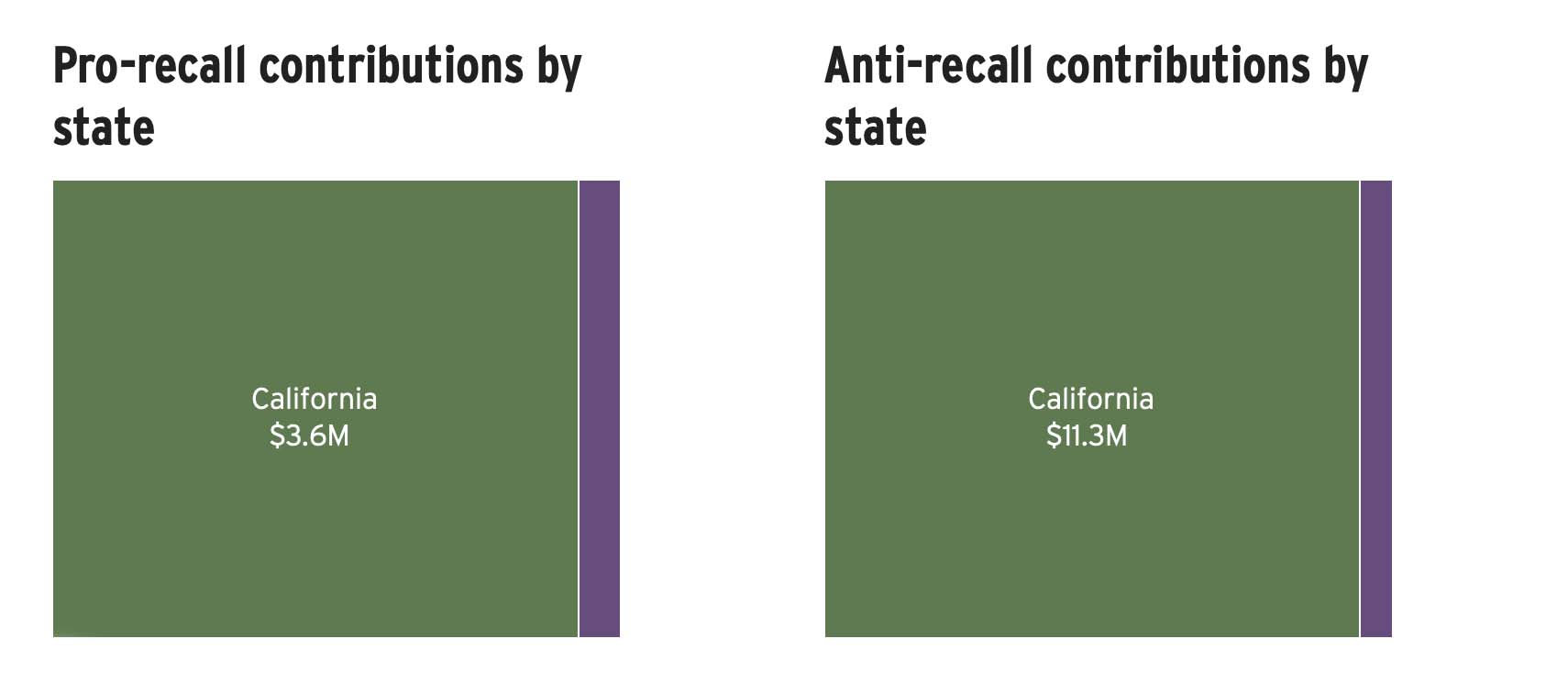 Pro-recall committees raised 93% of their itemized contributions from within California and about $294,000 from other states.