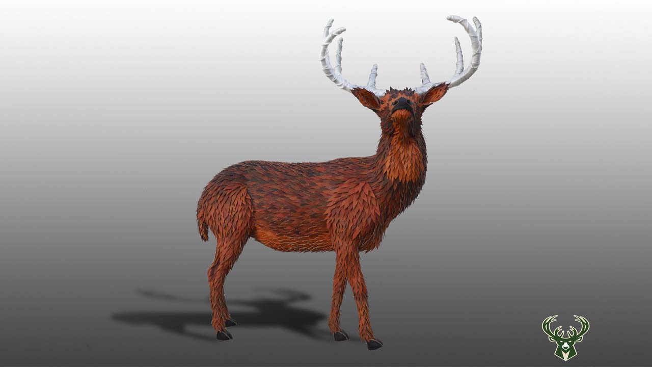 “That’s probably one of my favorite sculptures because it’s the first time I ever worked with basketball leather and then just the scale of it. This is like a six foot tall, ten foot long, massive buck in the arena. And I was really excited about that one,” McFarland said.
