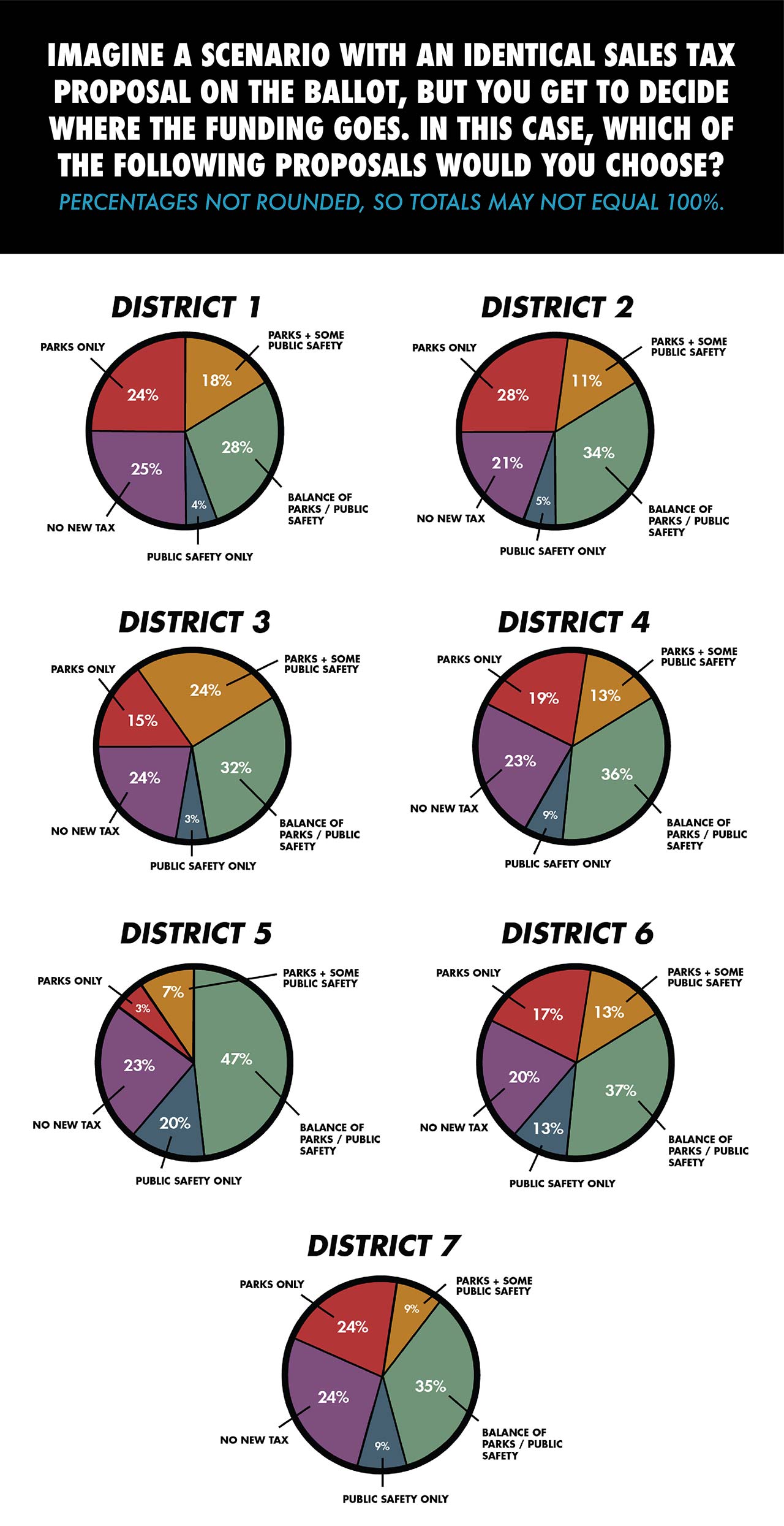 Averaged across all council districts, 59% of respondents favored spending at least a portion of Measure P tax proceeds for public safety.
