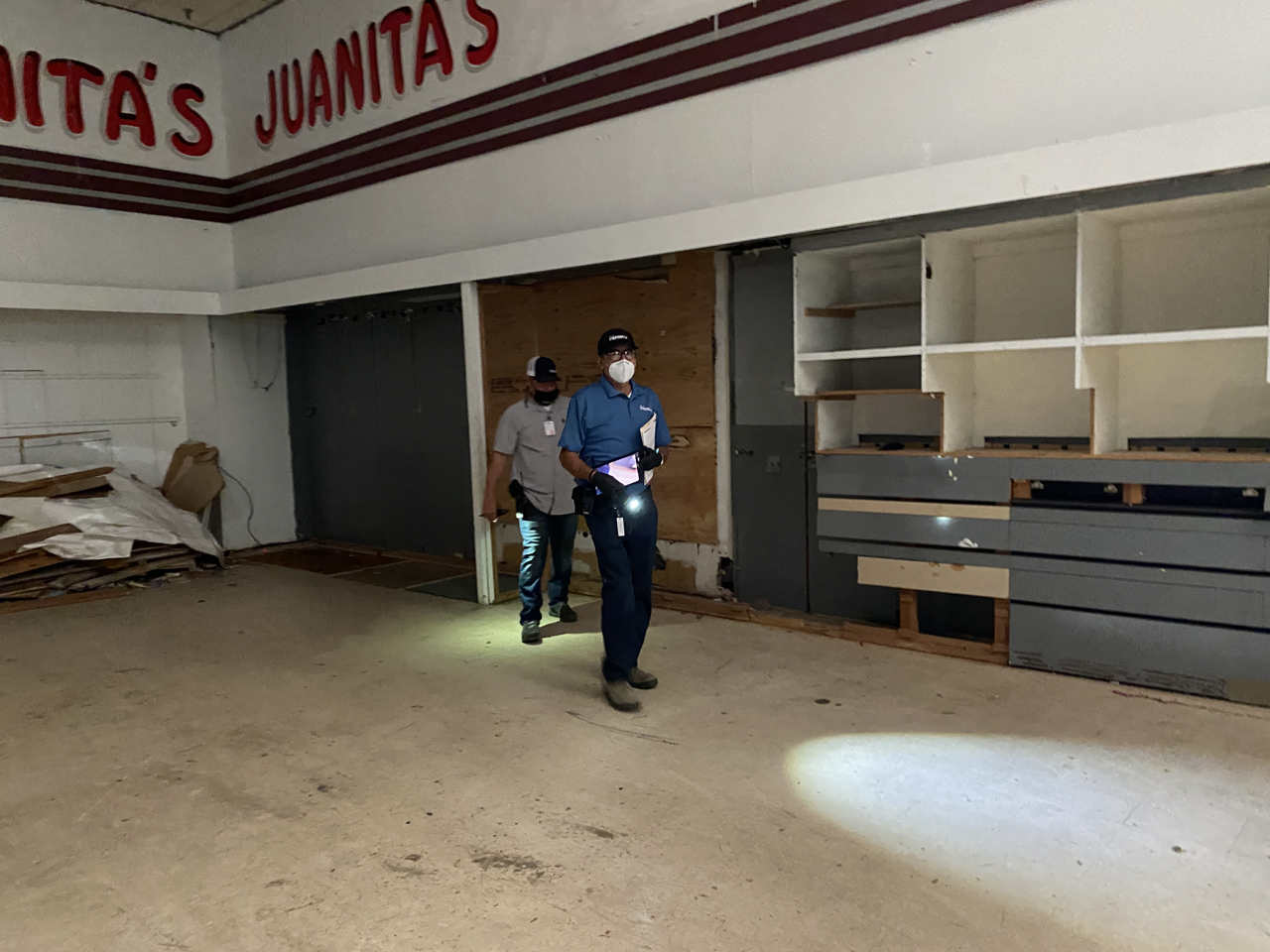 Arias led the media on a tour of the vacant building, as the inspectors took pictures and notes.