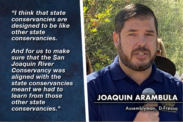 “I think state conservancies are designed to be like other state conservancies. And for us to make sure that the San Joaquin River Conservancy was aligned with the state conservancies meant we had to learn from those other state conservancies,” Arambula said.