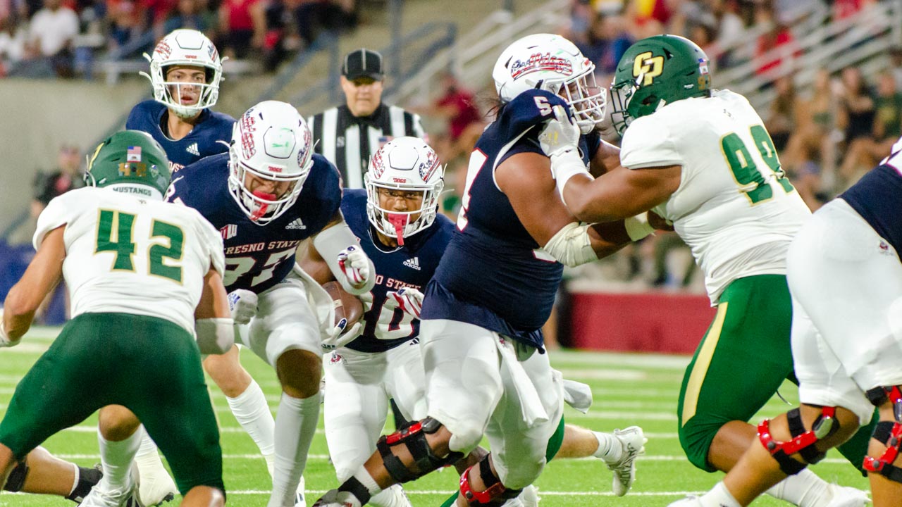 Haener was 17-of-22 passing for 380 yards against the Mustangs, and two of his scoring throws were over 50 yards. He added touchdown runs of 2 yards and 1 yard.