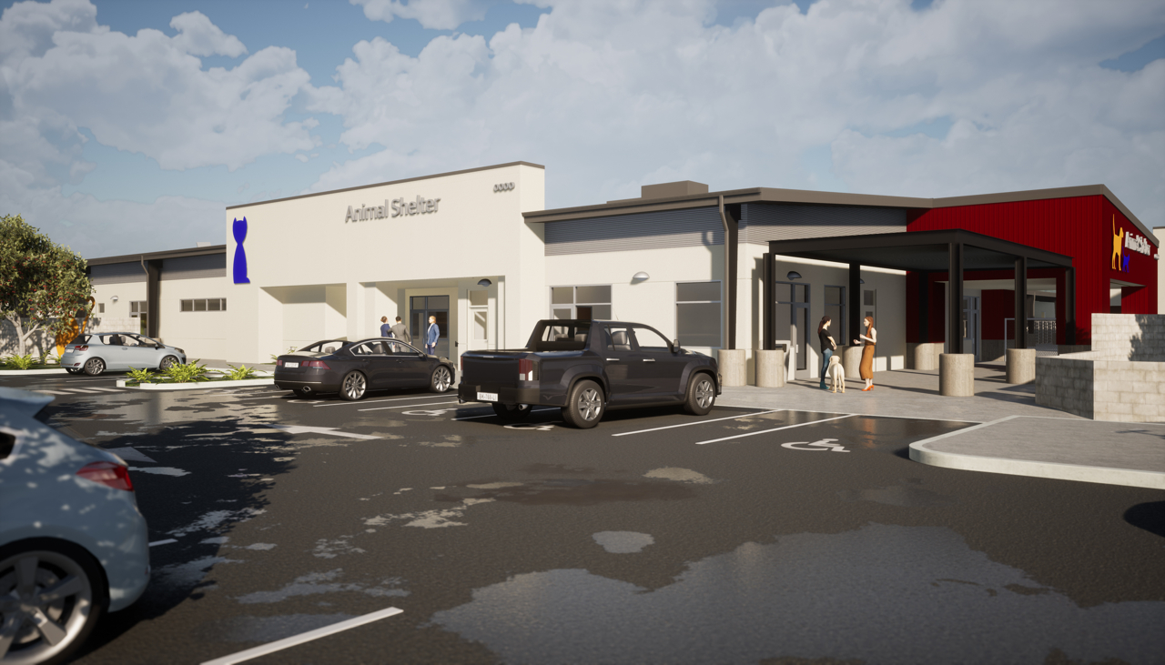 The shelter will house up to 12,000 dogs and 3,000 cats with full veterinary services. There will also be administrative offices.