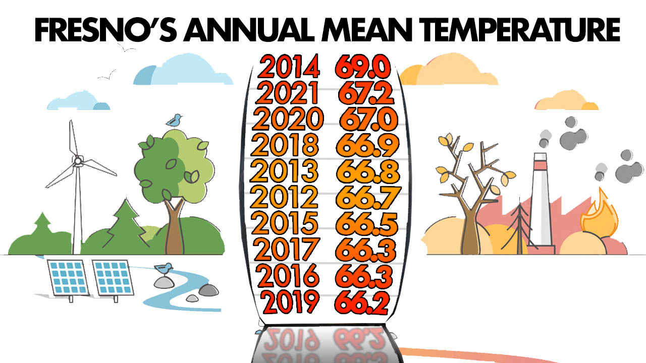 Fresno sweltered under its hottest summer ever last year, making 2021 the second-hottest on record with an annual mean of 67.2 degrees, only two-tenths of a degree hotter than 2020.