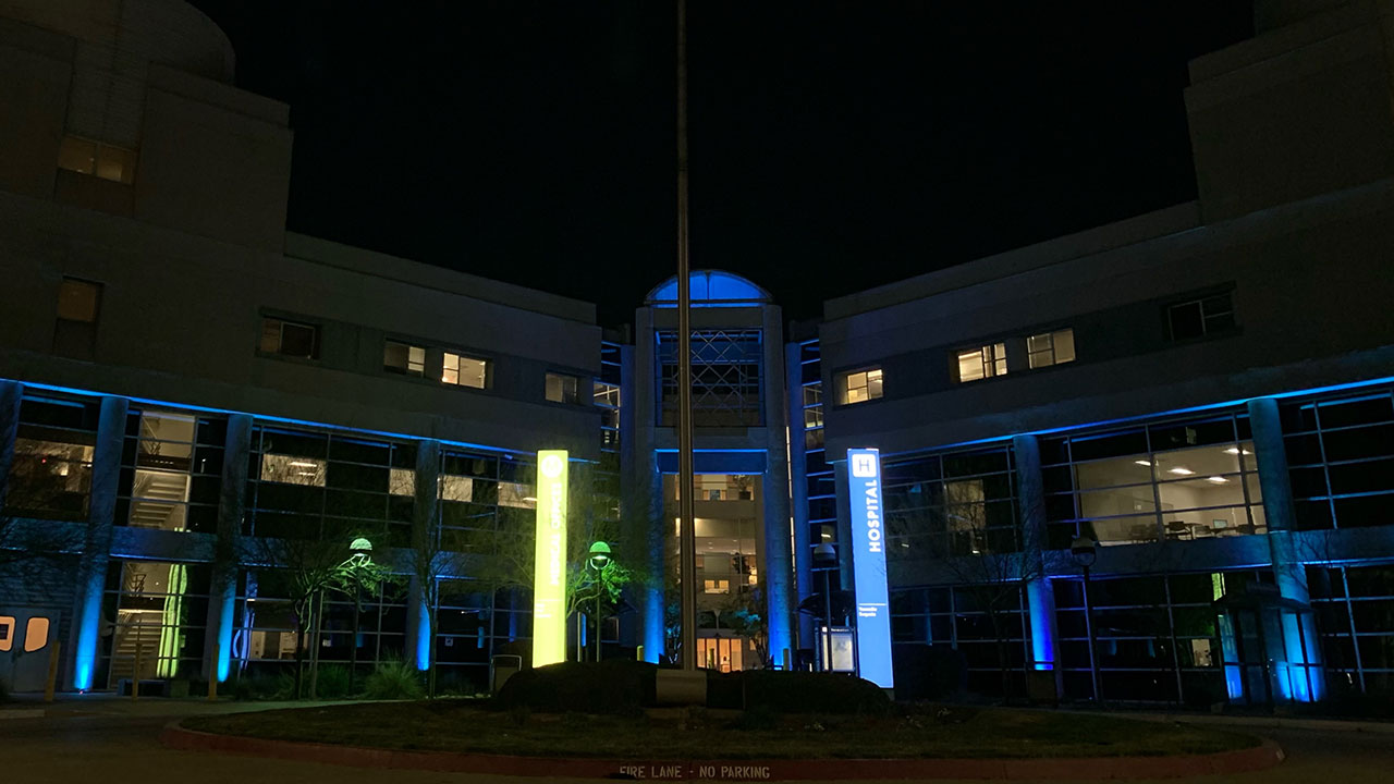 On the second anniversary of the COVID-19 global pandemic, blue lights are shining on our Fresno hospital to commemorate the perseverance of our physicians, nurses, staff and first responders over the last two years, and honor the resilience of our community. #BlueLightsAtDusk pic.twitter.com/bnUqUf5hX2