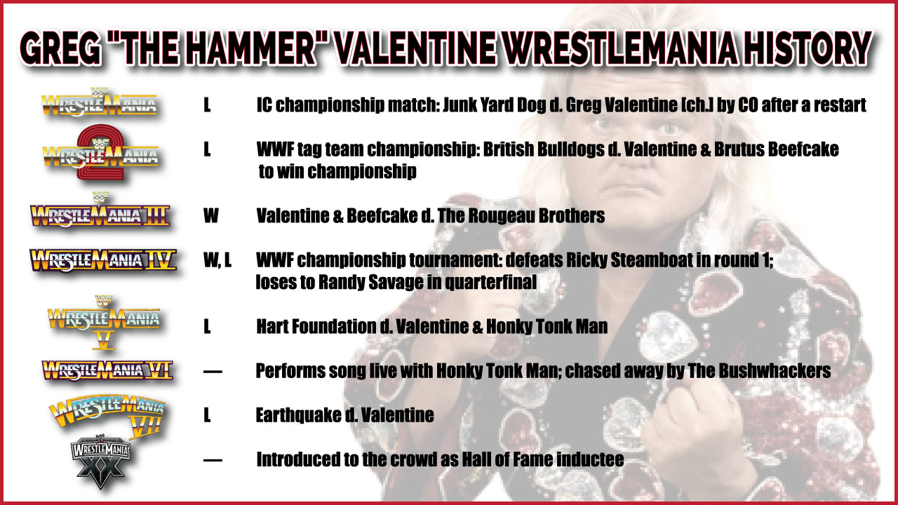 Valentine was also on the card for WrestleMania III in 1987 in front of 93,000 fans at the Pontiac Silverdome.