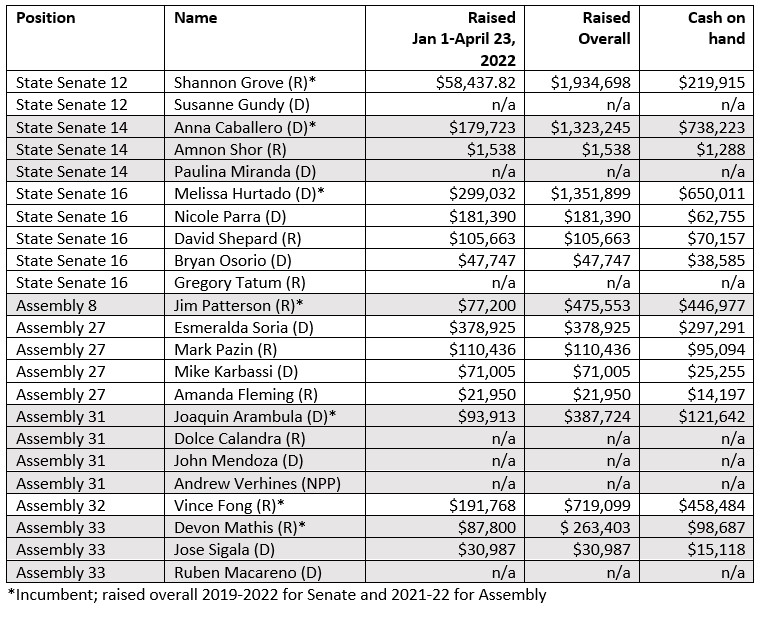 The most fastidious challenge to an incumbent in Senate District 16, where three candidates have raised six figures — incumbent Melissa Hurtado, D-Bakersfield, Democrat Nicole Parra of Bakersfield, and Republican David Shepard of Porterville.