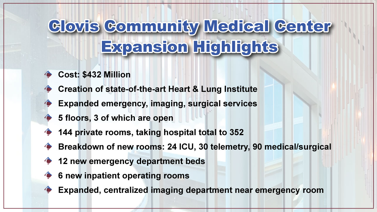 “This project was driven by population growth in Clovis and the demand for services we’ve seen — not just in Clovis but from throughout our surrounding counties,” said Chip Neuman, a Community Health Systems senior vice president.