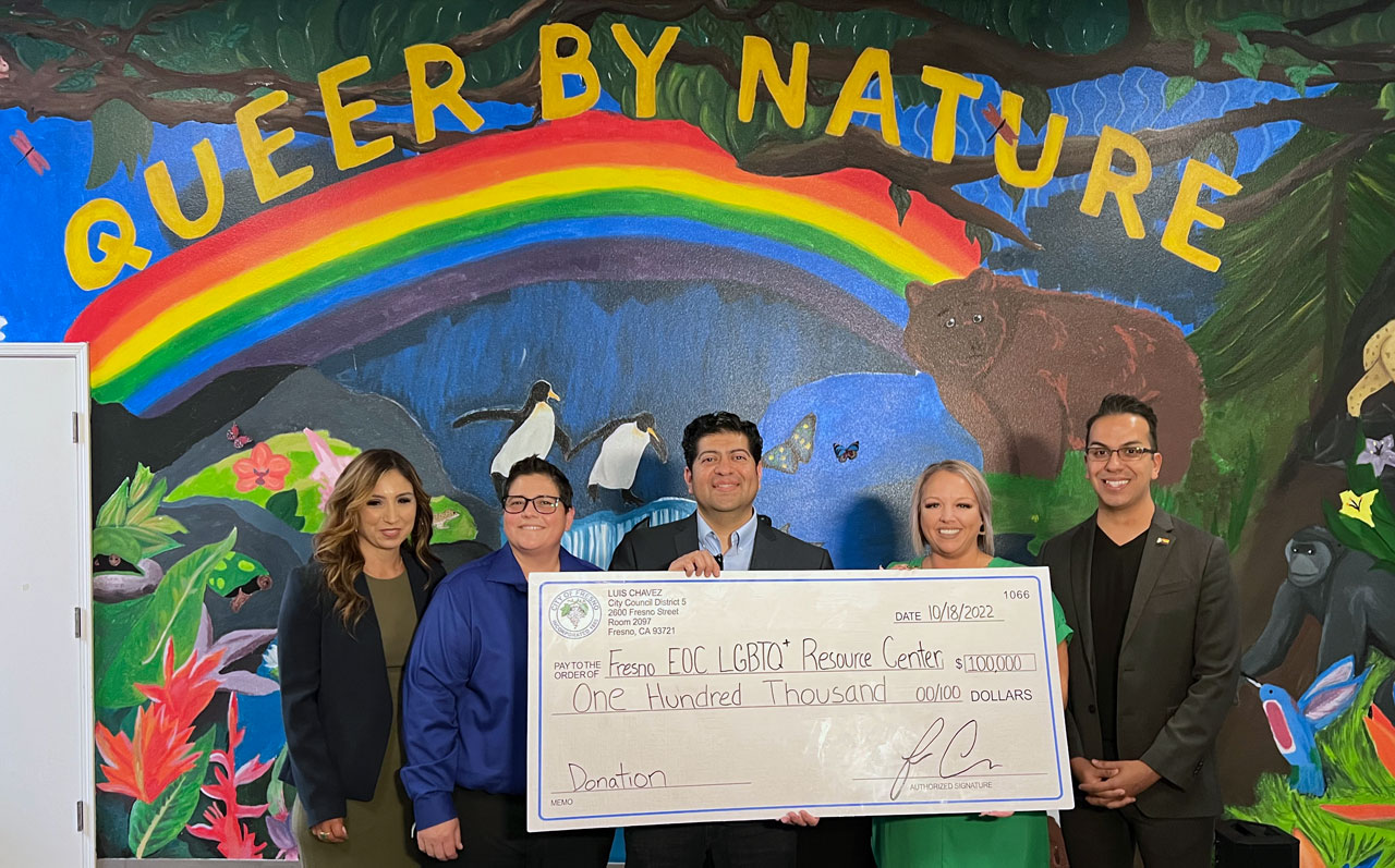 The Fresno Economic Opportunities Commission’s LGBTQ+ Resource Center received a $100,000 check in a presentation by City Councilman Luis Chavez on Tuesday.