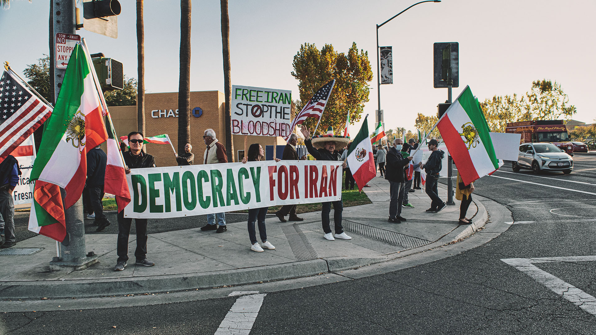 It marked the eighth week of protests organized by the Iranian-American Alliance of Fresno in support of the ongoing revolt in Iran against the Islamist government and calls for a secular democracy to replace it.