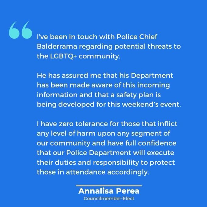 “I have zero tolerance for those that inflict any level of harm upon any segment of our community,” Perea said in a statement posted on Twitter by @uSparkValley. “And (I) have full confidence that our police department will execute their duties and responsibility to protect those in attendance accordingly.”
