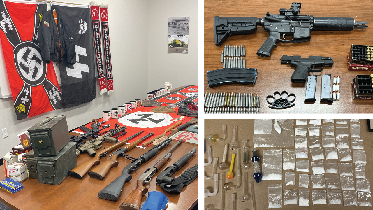 A search at several locations yielded bomb-making materials, illegal weapons, ammunition, packaged methamphetamine, and White Power paraphernalia. But Balderrama said it’s not yet known whether any of the bombings were racially motivated or could constitute hate crimes.