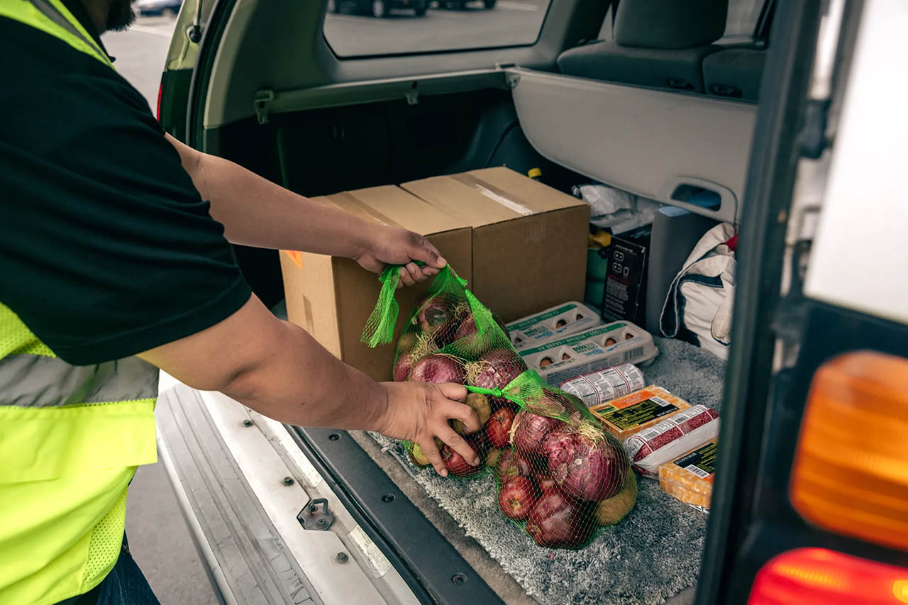 Every two weeks, cars line up at The Hill Church in Vallejo for a drive-thru food distribution. While Whitney Houston songs play over a speaker, volunteers load 39 pounds of food into each trunk — canned tuna, eggs, potatoes and other staples.