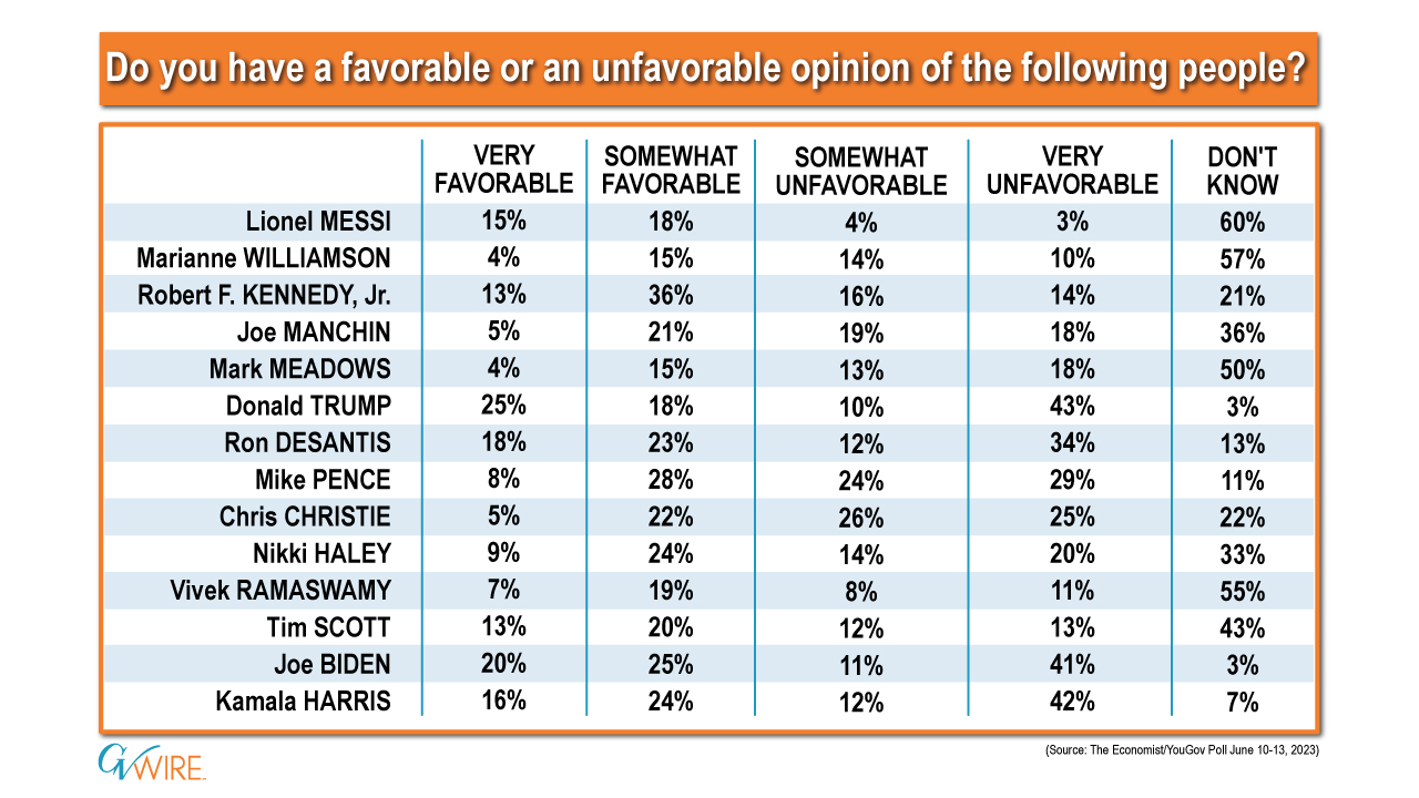 Though many political experts regard Robert F. Kennedy Jr. as a longshot to win the White House in 2024, a new poll indicates the Democrat with the famous family name has the best favorability rating among voters.