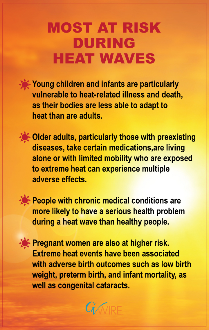 Older people, children, and those with health conditions can face greater risks when temperatures are high.