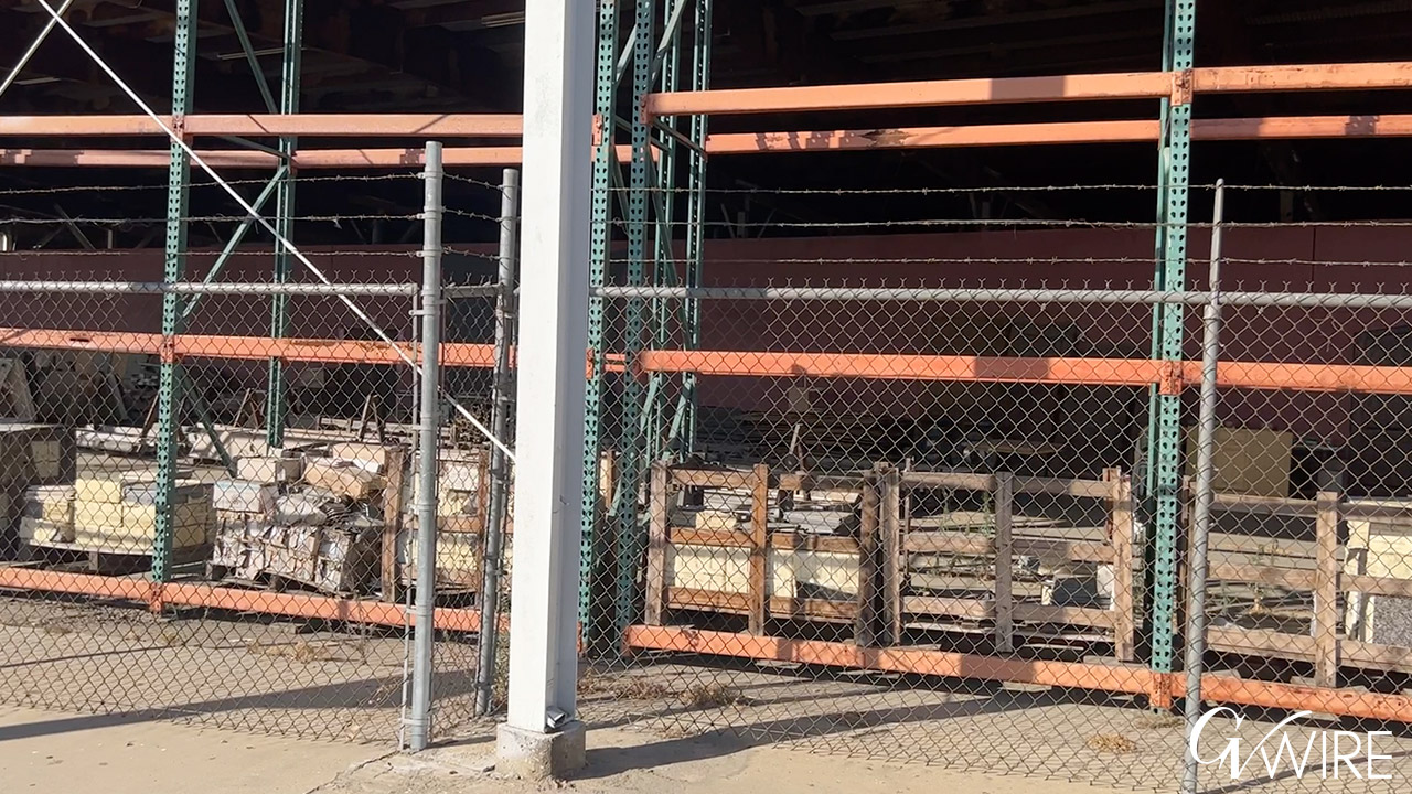 8 inch by 8 inch granite tiles stored outside of the building at 850 I Street in Reedley. (GV Wire/Paul Marshall)