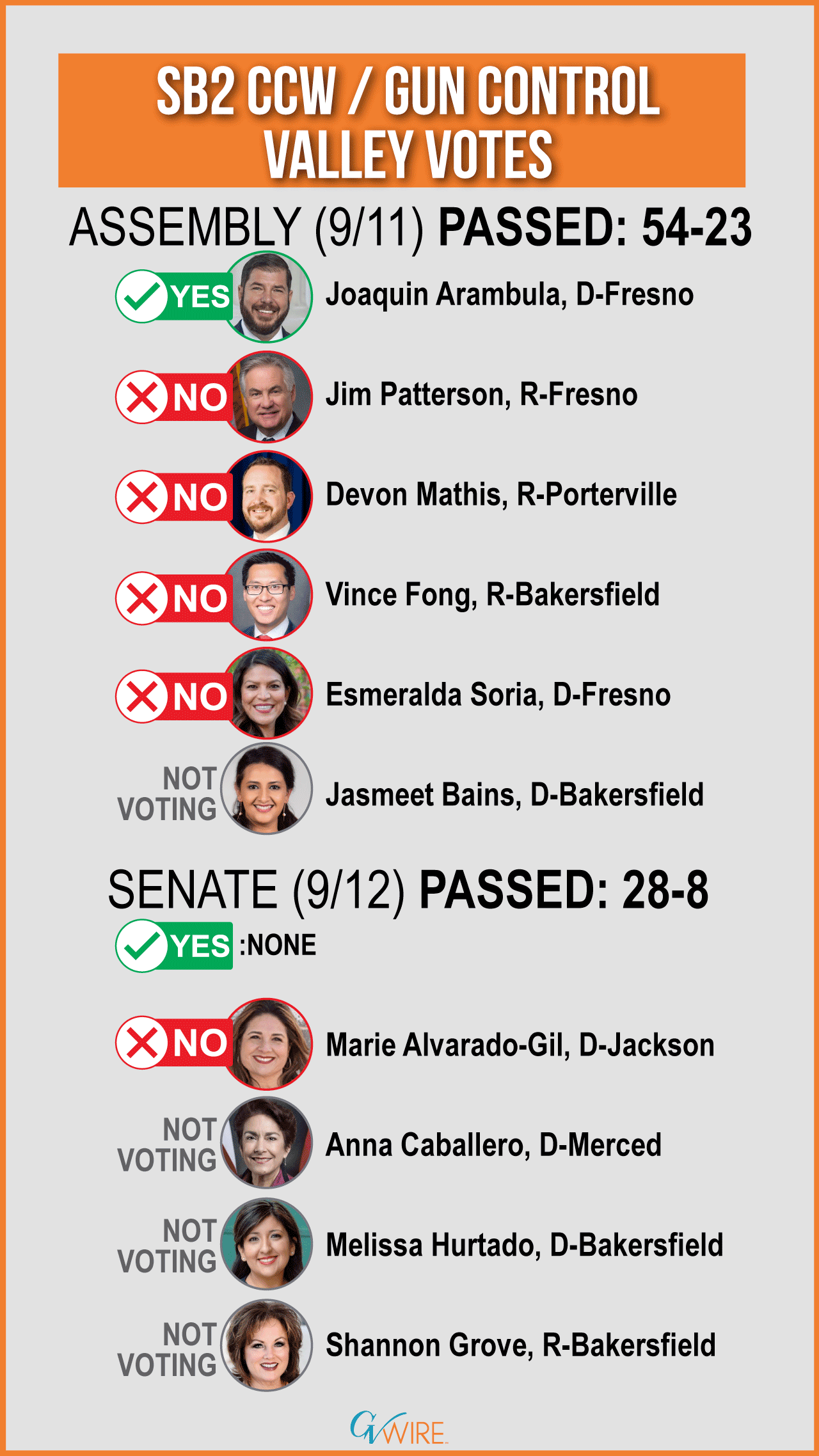 In the Assembly, only Joaquin Arambula, D-Fresno voted yes. Fresno Democrat Esmeralda Soria joined Jim Patterson, R-Fresno; Devon Mathis, R-Porterville; and Vince Fong, R-Bakersfield in opposing the bill.