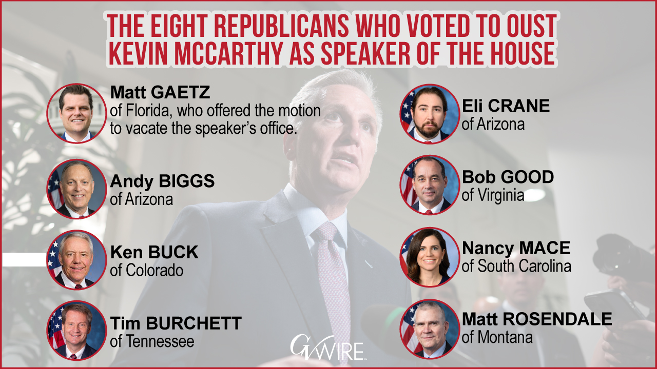 The eight Republicans who voted to replace Kevin McCarthy as Speaker of the House were: