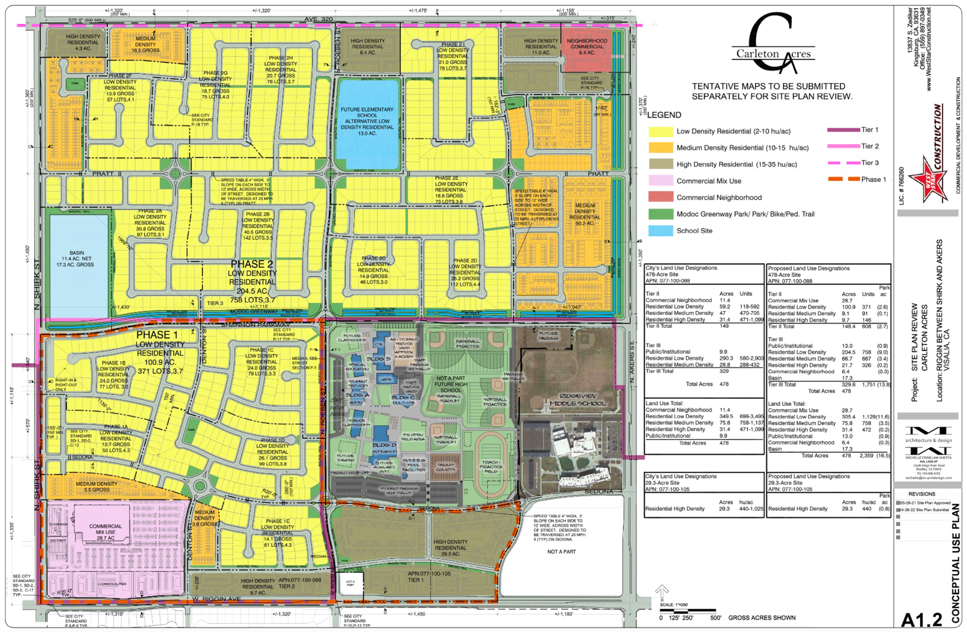 The plan area spans Riggin Avenue to the south and Avenue 320 to the north, bordered by Shirk Road and Akers Street. Built around homes “maybe a step or two up from entry level and a mix after that,” according to Shannon, the project would be delivered in two phases across 15 years.