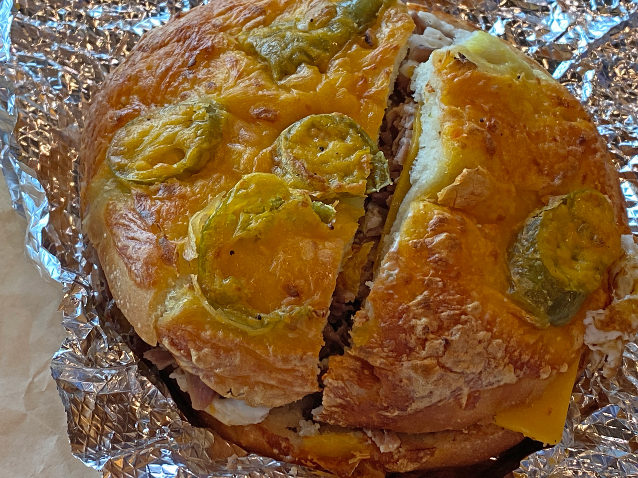 One of the early top-sellers is the Texas brisket egg sandwich ($7.99 with one egg; $9.39 with two eggs). The sandwich includes smoked beef brisket, cheddar, smoky chipotle aioli on a cheddar jalapeño bagel.