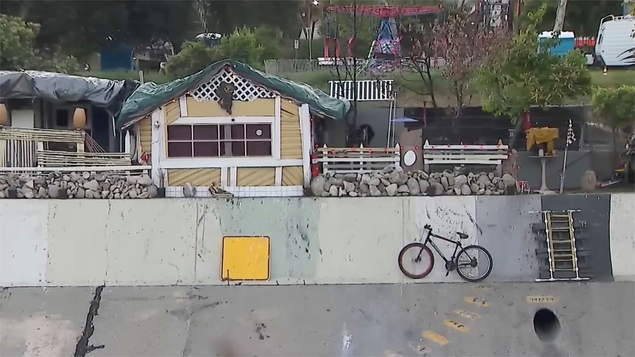 The well-built structure is a stark contrast to other homeless-made shelters along the drainage basin. The video below was captured by Los Angeles news station KTLA.