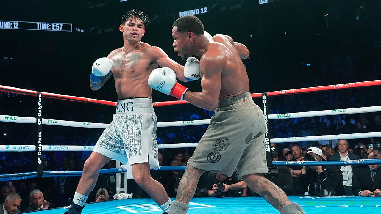 Superstar boxer Ryan Garcia, left, of Los Angeles, pledges to donate $20 million each to Gaza and Israel to support children after his victory over Devin Haney. (AP File)