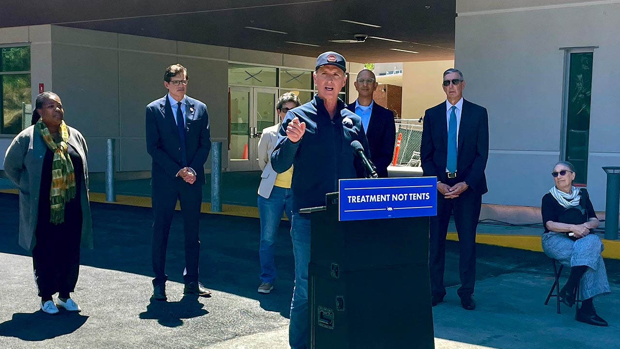 California Governor Gavin Newsom announces $3.3 billion funding for mental health and substance use treatment centers to address the state's homelessness crisis. (AP/Haven Daley)